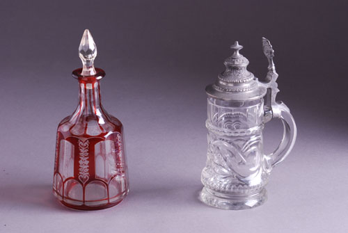 Austrougarska, Bohemija. Oko 1850. Brušeno, prozirno i karakteristično rubin crveno staklo. Visina 24 cm.