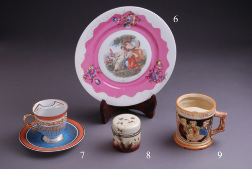 Francuska, 1830. godina. Glazirani porcelan polihromno i pozlatom rukom oslikan. Plavi monogram J.P. (Jacob Petit, Fontainebleau). Dimenzije: 21 x 11,5 cm.