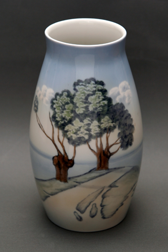 Kopenhagen, Danska. Rukom oslikana motivom pejzaža drveća na obali. Podglazurni žig: B&G (Bings & Groendhal) Visina: 22,5 cm.