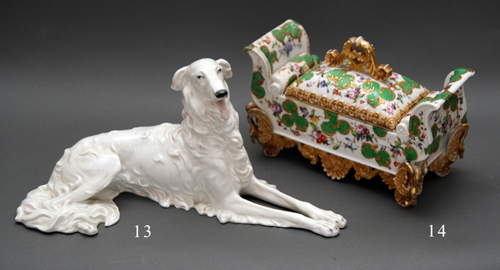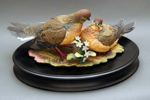 Nemačka. Biskvit porcelan polihromno oslikan, na drvenom ovalnom postolju. Žig: Lorenz Hutschenreuther, Kunstabteilung, limit edition No 168 of 750 by Gunher R. Granget, F.K. Malo oštećenje repa. Visina: 13 cm, postolje: 31 cm.