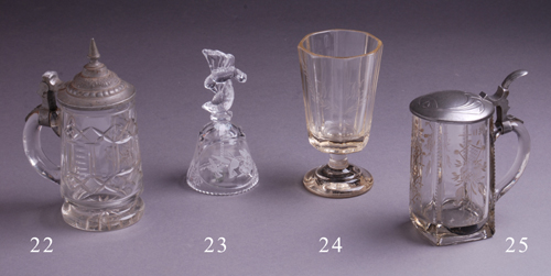 Između dva rata. Oslikano staklo sa ručkom u obliku kolibrija. Visina: 14 cm.