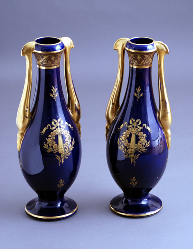 Dresden, Nemačka. Kraj XIX veka. Rukom oslikama cvetnim motivima i pozlatom sa poklopcem. Visina: 42 cm.