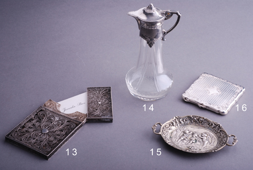 Srebro, filigran, oko 70 gr. Dimenzije: 11 x 7 x 1 cm.