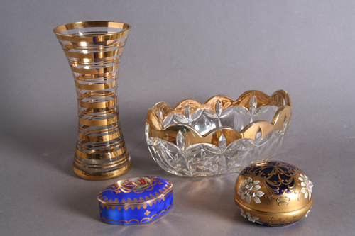 Austrija, XIX vek. Kristal, pozlata, floralni motivi. Visina: 14 cm.