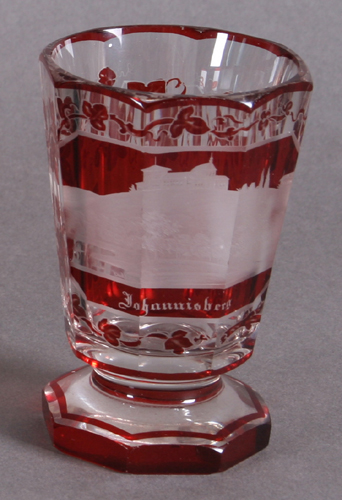Bohemia, kraj XIX veka. Brušeno rubin staklo, ugravirano: Johannisberg. Visina: 9,5 cm.