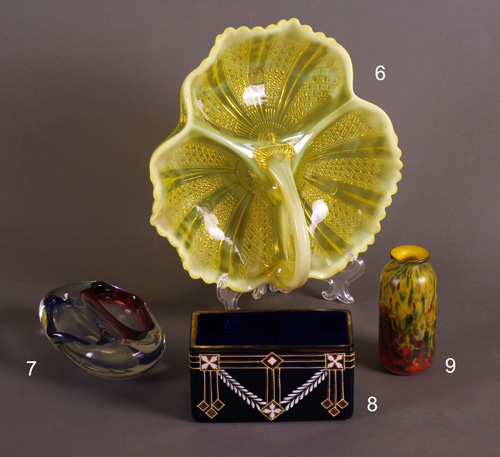 Češka, oko 1910. Staklo ručno oslikano emailom i pozlatom. Visina: 17 cm.