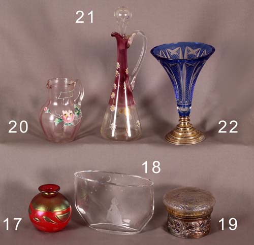 Staklo sa posrebrenim omotačem u stilu secesije. Visina: 7 cm.