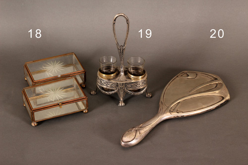 Brušeno staklo i mesing. Dimenzije: 10,5 x 6,5 x 4,5 cm. (2 kom.)