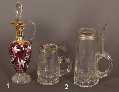 Dve staklene krigle sa poklopcima