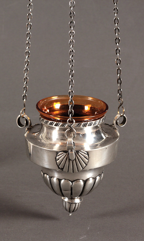 Oko 1900. Mesing, staklo. Visina: 25 cm