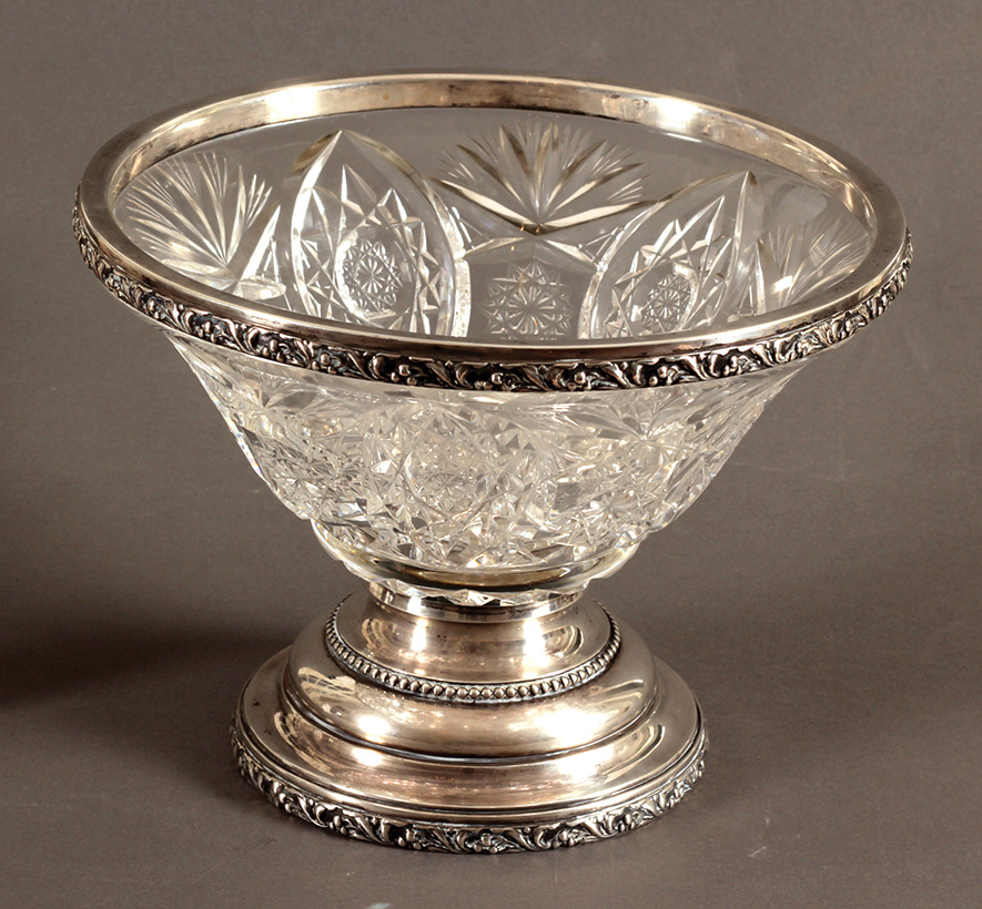 Kristalna frutijera sa srebrnim postoljem i obodom