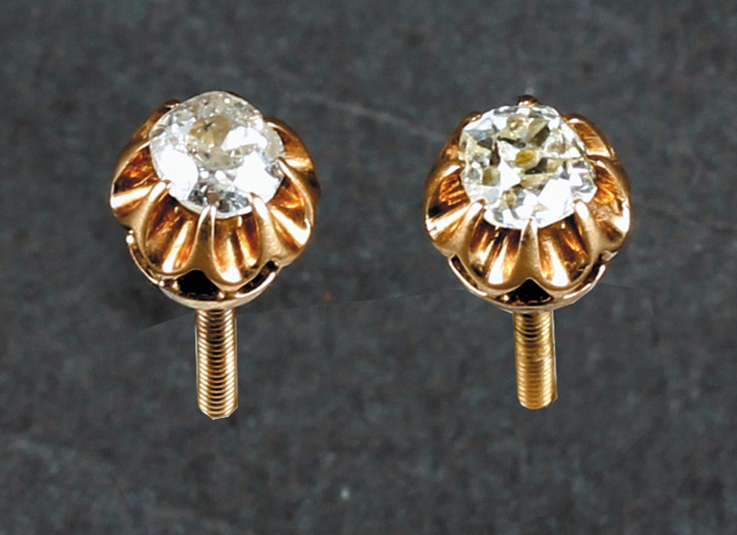 Zlatne minđuše sa dijamantima starog šlifa