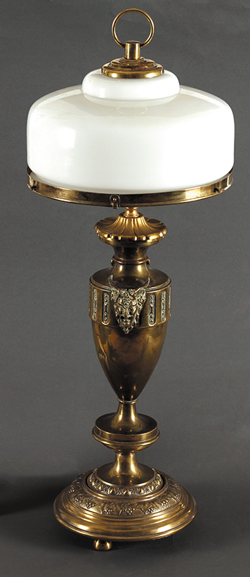Oko 1900. Mesing, staklo. Visina: 65 cm
