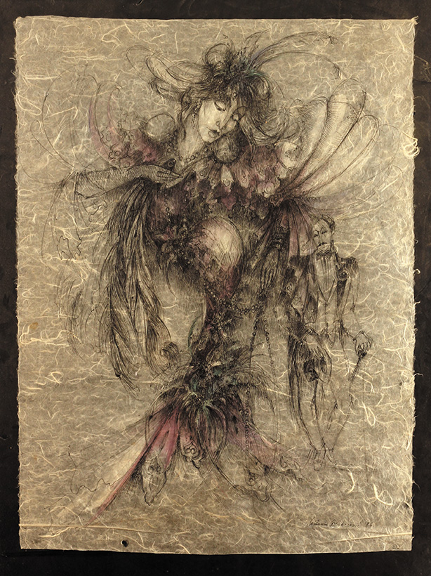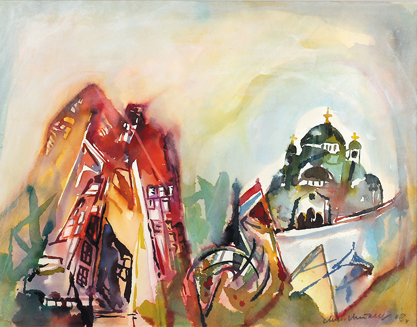 Tuš, akvarel na tkanini 83x61 cm 1986 Sign.