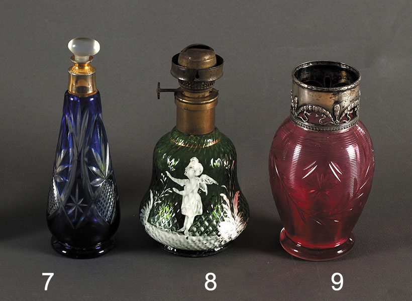 Srbija. Oko 1910. Zeleno staklo oslikano emajlom. Visina: 15 cm.