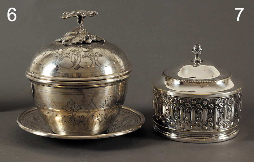 Oko 1900. Posrebrenje, staklo. Visina: 24 cm, prečnik: 10,5 cm