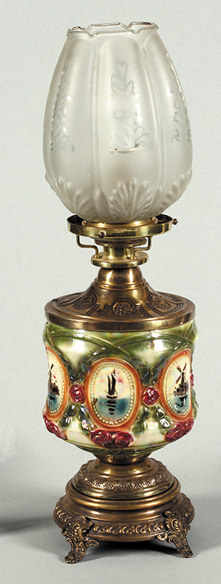 Majolika, staklo i mesing. Visina: 51 cm
