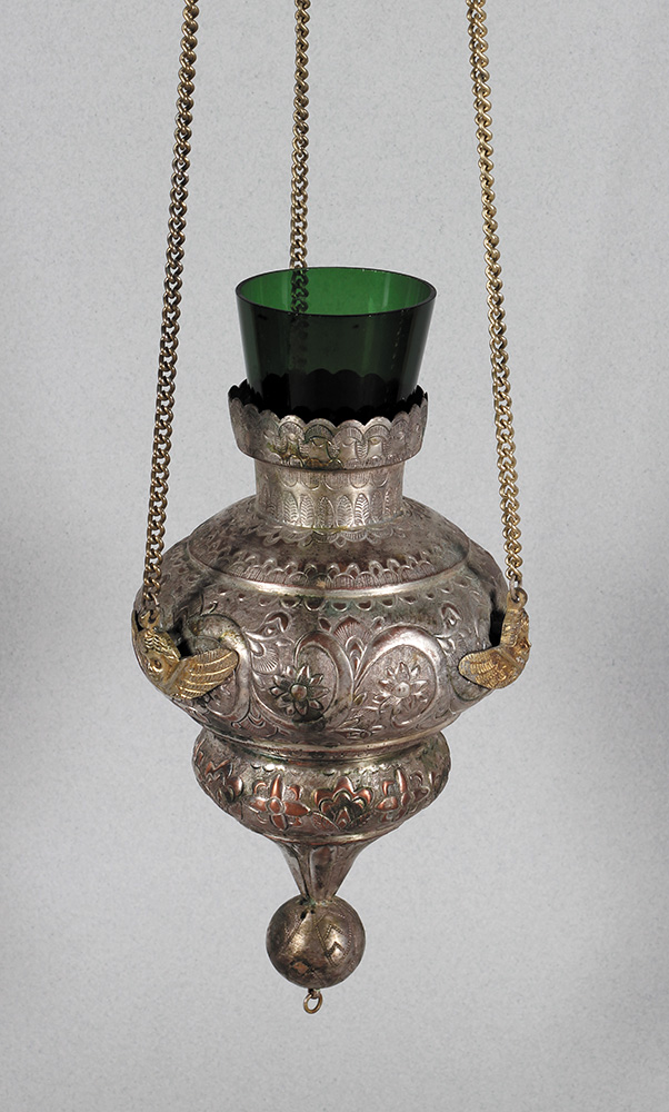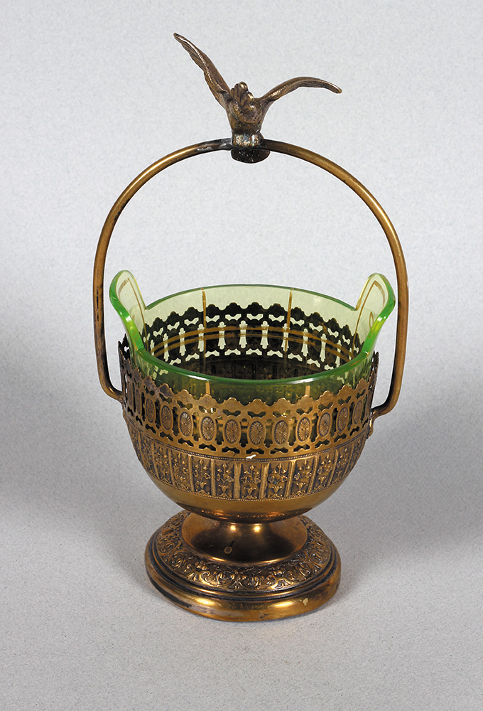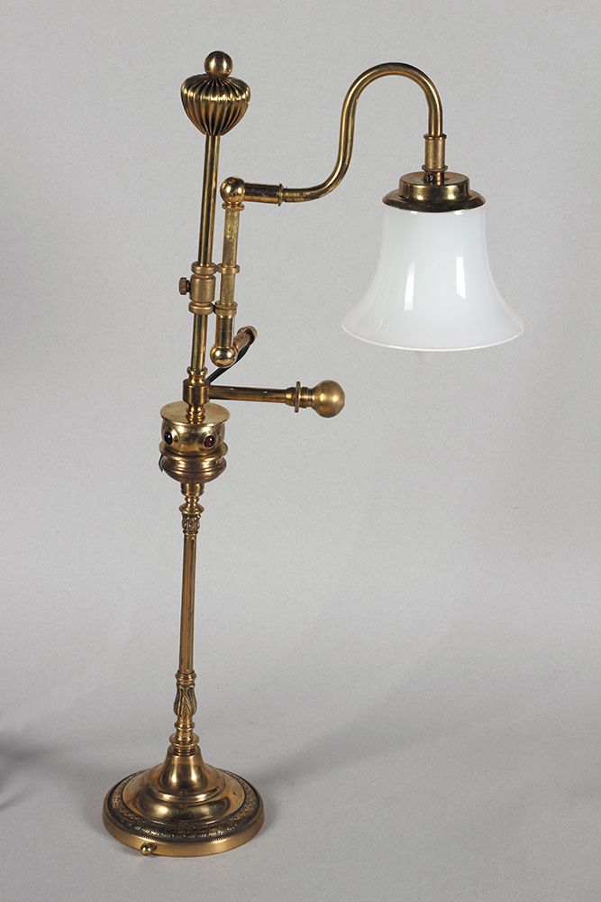 Oko 1900. Mesing, staklo. Visina: 24 cm.