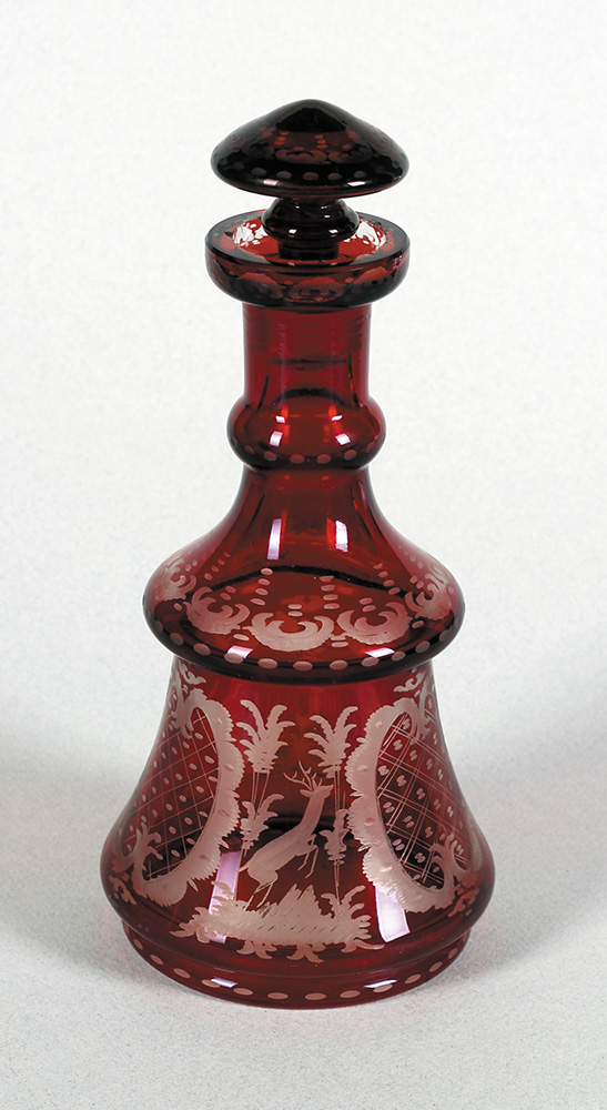 Bohemija. Crveno, brušeno staklo. Visina: 22 cm