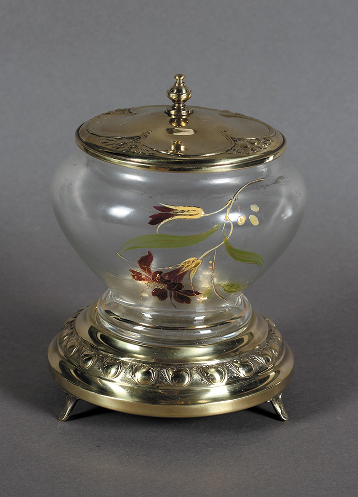 Staklo, ručno oslikano, mesing. Visina: 15 cm