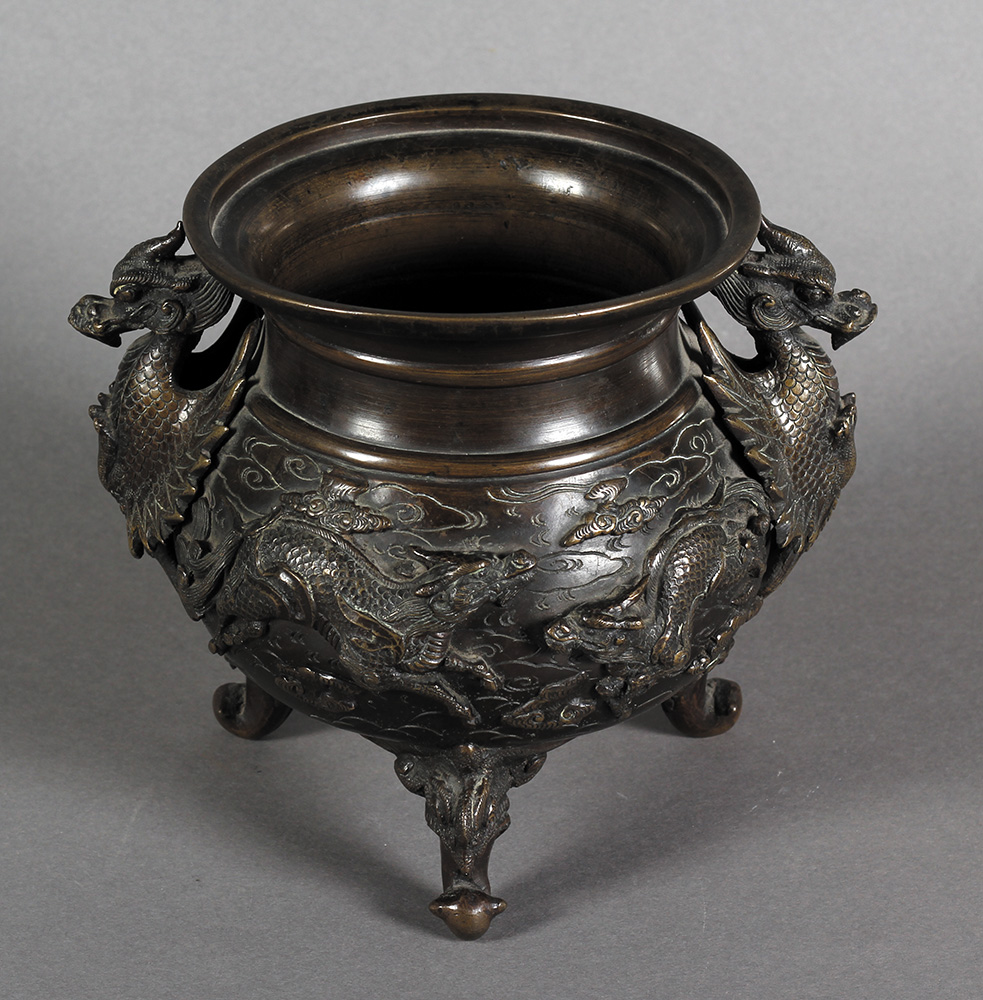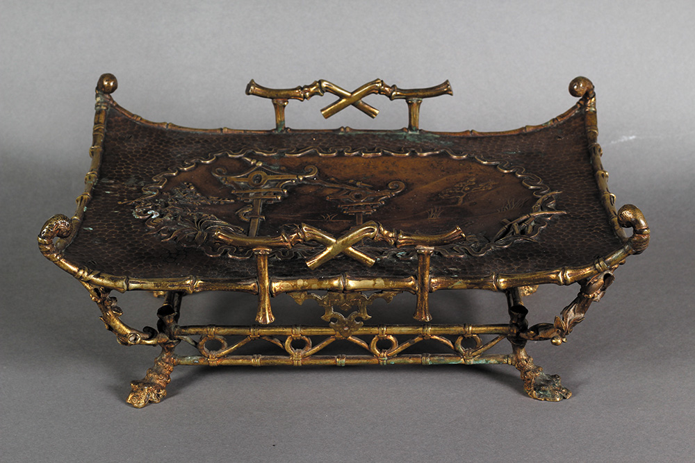 Japanski pozlaćeni i patinirani bronzani poslužavnik na postolju